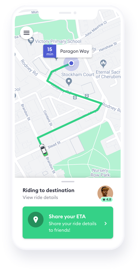 Request a ride in app, and a nearby driver will pick you up.