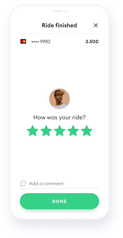 You can rate your driver and pay for the trip automatically through the app.